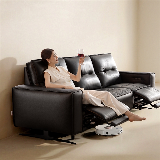 在细节设计上,黑马沙发也契合现代高效生活,采用14cm高脚设计,满足高度≤12cm的主流扫地机器人自由进出,沙发底无死角清扫,彻底解决藏灰难清洁的痛点。