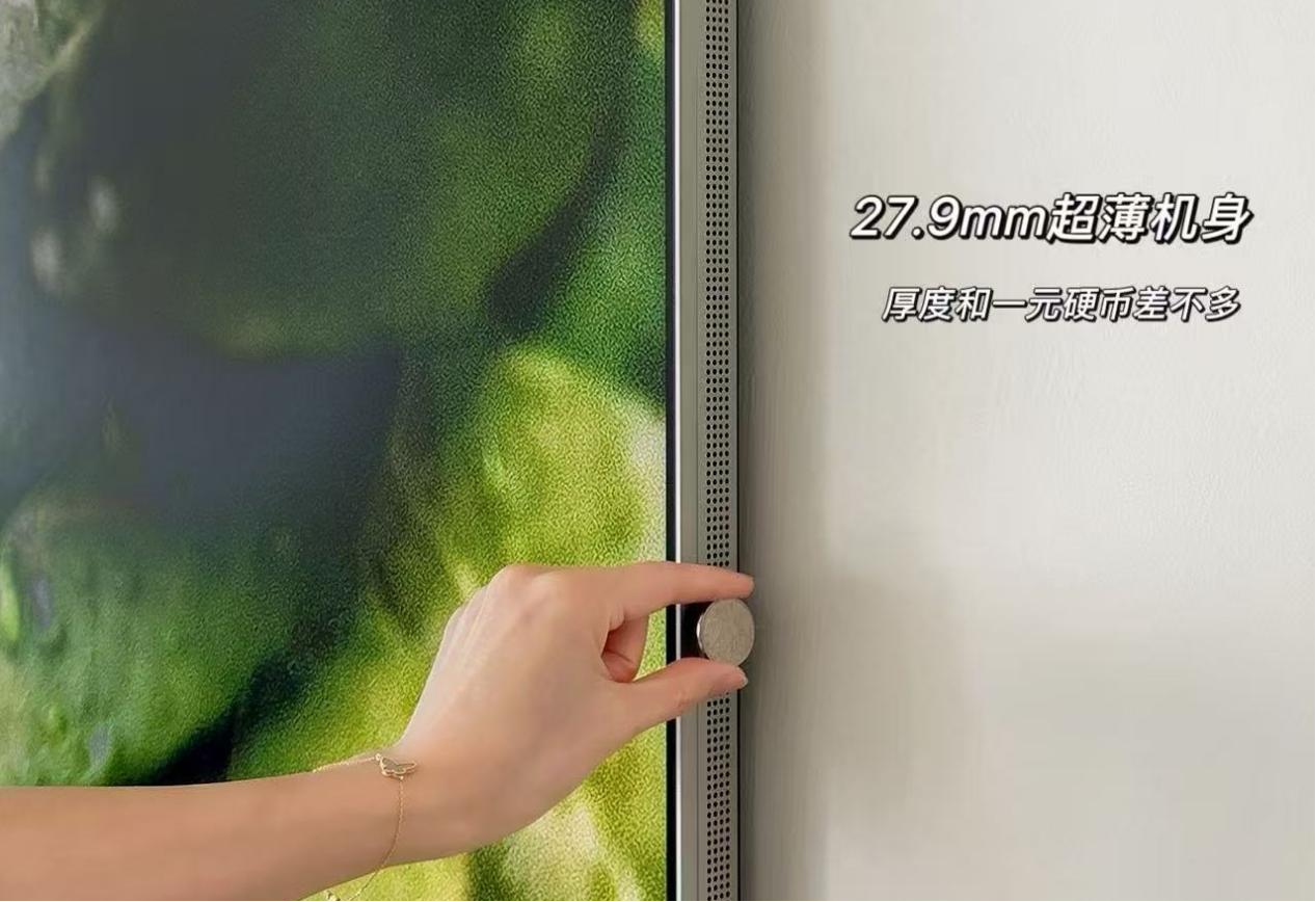 壁纸电视之所以备受广大消费者喜爱,离不开超薄机身带来的优雅美感。创维A10H系列的外观设计遵循「博朗美学」理念,机身厚度只有27.9mm,和一枚立着的硬币相当,比友商的同级产品薄了47%。